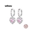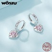 Wostu Düğün Takısı 925 Ayar Gümüş Pembe Cz Kalp Bırak Dangle Küpe Kadınlar İçin Platin Plaka Aşk Kalp Kız Çemberler Hediye