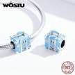 Wostu Moda 925 Ayar Gümüş Bavul Bagaj Mavi Boncuk Fit Orijinal Bilezik Charm Kolye Gümüş