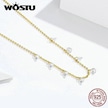 Wostu Otantik 925 Ayar Gümüş Küçük Zirkon Kolye Basit Tasarım Kolye Gümüş