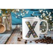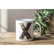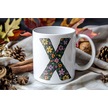 X Baş Harf Çiçek Desenleri İle Natural Tarz Kupa Bardak - Kişiye Özel Çiçekli Kahve Çay Bardak - Beyaz