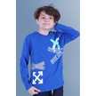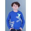 X Baskılı Uzun Kollu Erkek Çocuk Indigo Sweatshirt İndigo