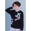 X Baskılı Uzun Kollu Erkek Çocuk Siyah Sweatshirt Siyah