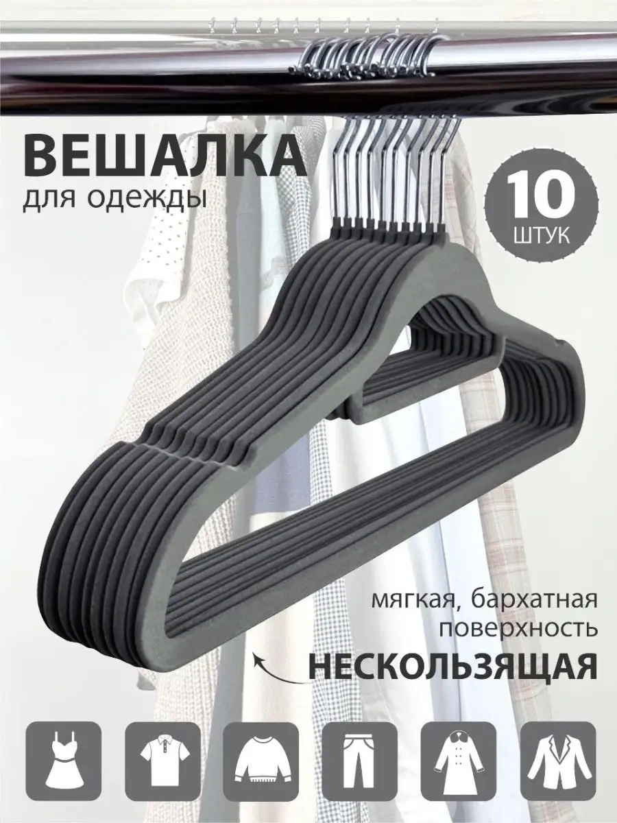 X-company Kıyafet Askıları Kadife Takım 10 Parça 70110183 Koyu Gri