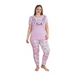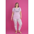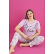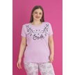 X-dreamy Büyük Beden Pamuklu Çiçekli Kısa Kollu Pijama Takımı Lila