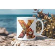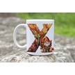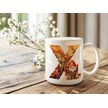 X Harf Sonbahar Yaprak Temalı Kupa Bardak - Sevimli Figürler İle Alfabe Harfli Bardak - Kişiye Özel Beyaz