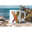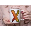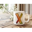 X Harf Yaprak Renkleri İle Kupa Bardak - Kişiye Özel Alfabe Harfli Bardak - Hediye Beyaz