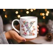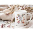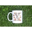 X Harfi Çiçekli Kupa Bardak - Soft Renk Çiçek Ve Kelebek Desenli Zarif Kahve Kupası - Bohem Beyaz