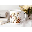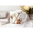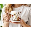 X Harfi Pembe Kareli Kalpli Göz Emojili Kupa Bardak Eğlenceli Kareli Tasarım Kahve Çay Kupası Beyaz