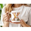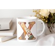 X Harfi Sonbahar Kış Temalı Yamalı Tasarım Kupa Bardak - Etnik Ve Pathwork Severlere Özel Hediye Beyaz