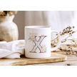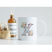 X Harfli Çiçek Desenli Kupa Bardak - Ekose Desenli Yeşil Pembe Desenli Tasarım - Kişiye Özel Hediye Beyaz