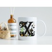 X Harfli Halloween Kedili Figür Kupa Bardak - Şapkalı Ve Kazanlı İsme Özel Kupa - Hediye 07 Beyaz