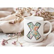 X Harfli Pastel Çiçek Desenli Kahve Kupası - Kişiye Özel Çiçekler Koleksiyonu Bardak - Hediye Beyaz