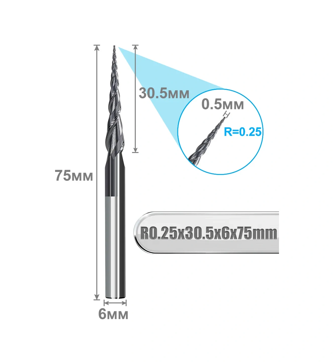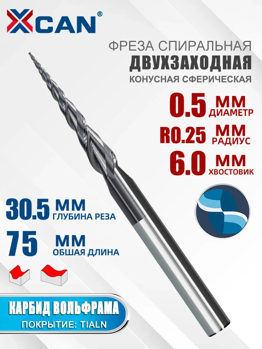 Xcan Spiral Çift Yönlü Konik Freze 0,25x30,5x6x75 Mm. 245254860