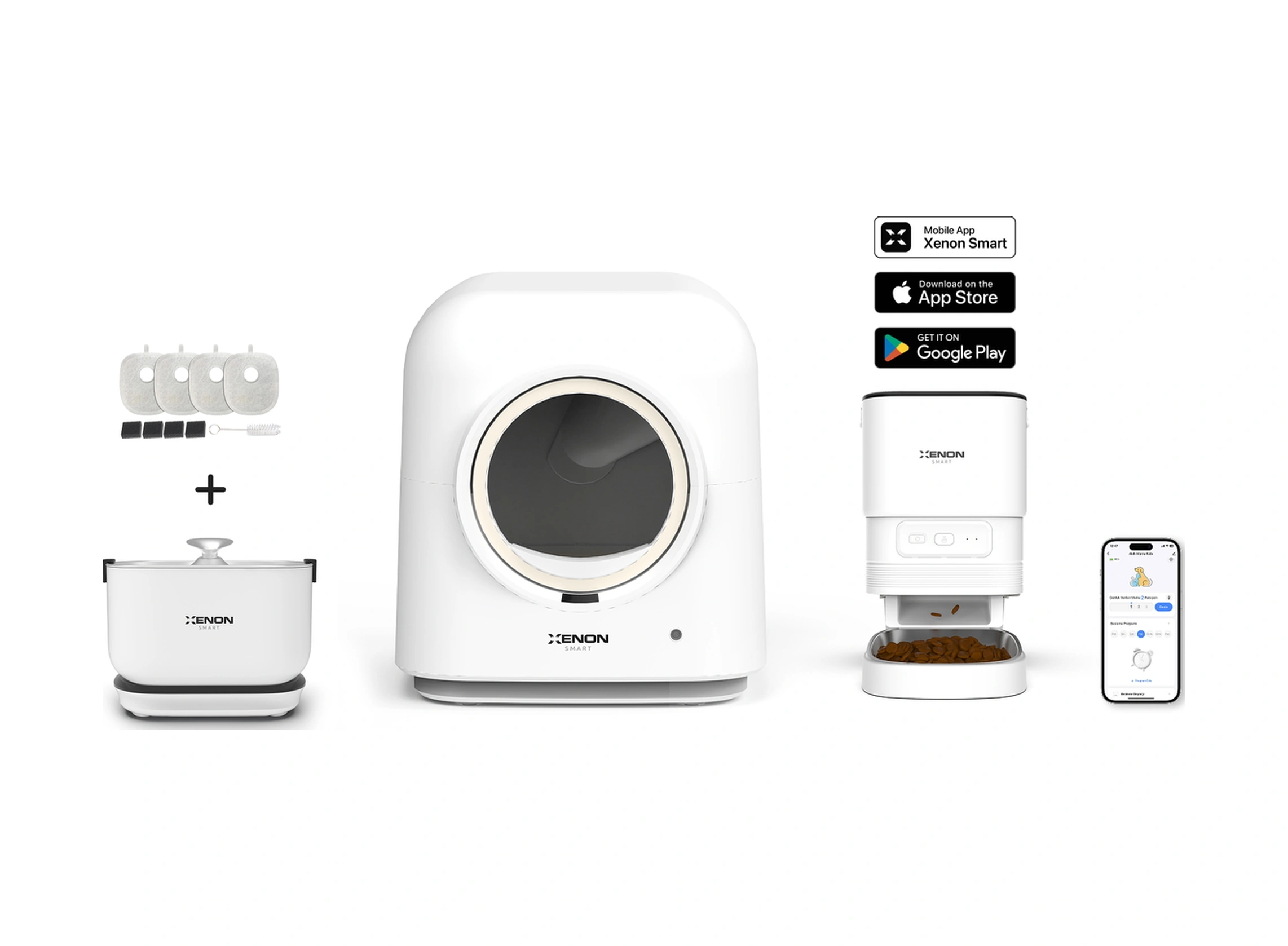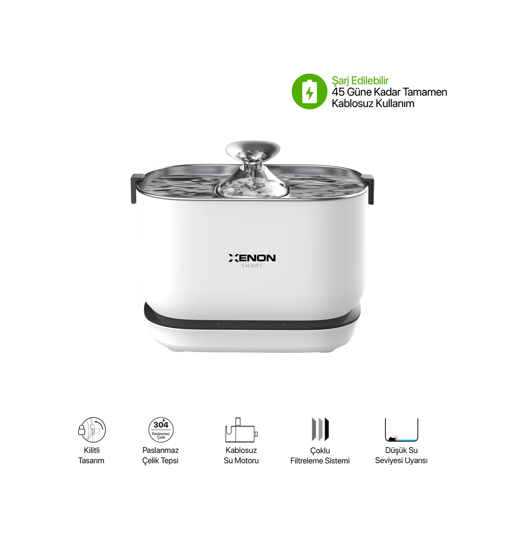 Xenon Smart Akıllı Otomatik Kedi Tuvaleti 4lt Çelik Hazneli Mama Kabı Bataryalı Su Pınarı Ve Yedek Filtre Pet Seti