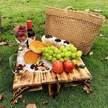 Xiaaokeji Ahşap Dış Mekan Katlanır Piknik Masası, Dönüştürülebilir Depolama Ahşap Sepet Kahverengi