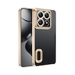 Xiaomi Mi 14t Pro Kılıf Parlak Kenarlı Logo Çerçeveli Kamera Korumalı Omega Silikon Kılıf Gold