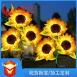 Ximistore9 Güneş Enerjili Gül Bahçe Bahçe Simülasyonu Dekoratif Çim Toprak Işığı Üç Başlı Ayçiçeği Opp Tekli Paket