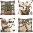 Ximistore9 Noel Baskılı Yorgan Kılıfı, Kuzgun Geyik Desenli, Ev Araba Koltukluk, Ketene 45x45 Cm, Tek Kılıf, Ct196-3 Diğer