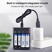 Xindoker 4 Yuvalı Hızlı Şarj Cihazı - Aa/aaa Ni-mh Pil Şarj Aleti, Usb Güçlü Akım Yeşil Işıklı