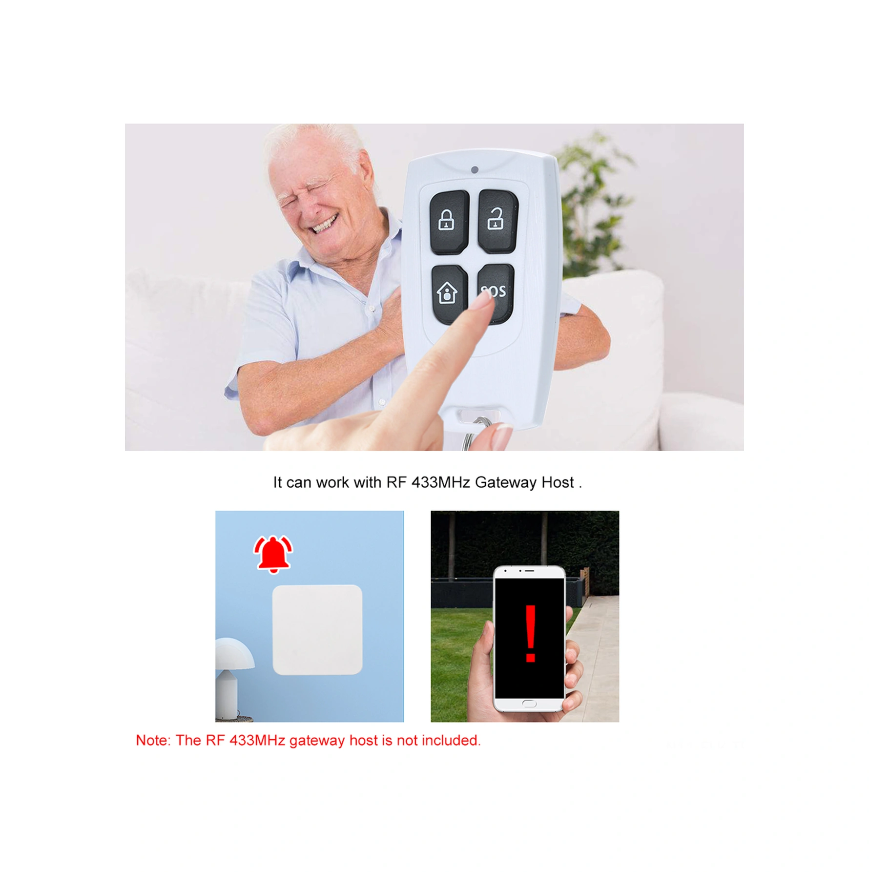 Xindoker 433mhz 1527 Protokolü 4 Tuşlu Kablosuz Kumanda Güvenlik/çözme/evde Güvenlik/acil Tuş - Ağ Geçidi İle Çalışır, Cr2032 Pil Dahil