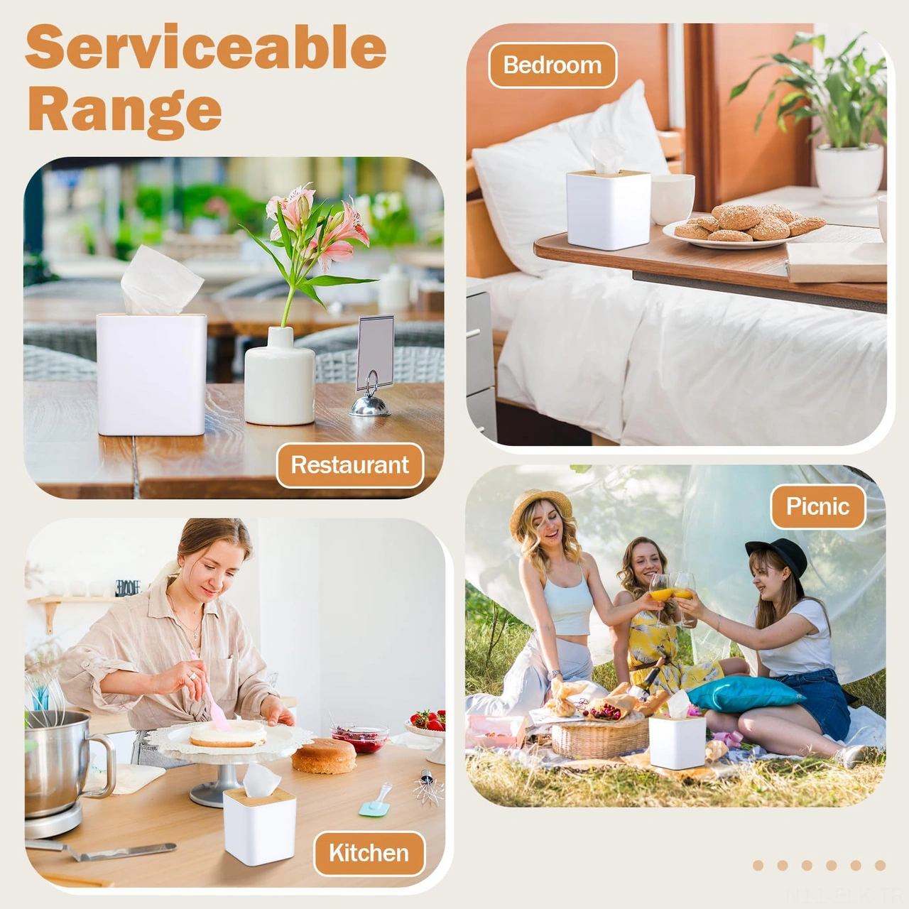 Xindoker Beyaz Bambü Havlu Kutusu Kapağı Kare 2 Adet - Banyo, Yatak Odası, Ofis İçin Elegant Organizer Beyaz