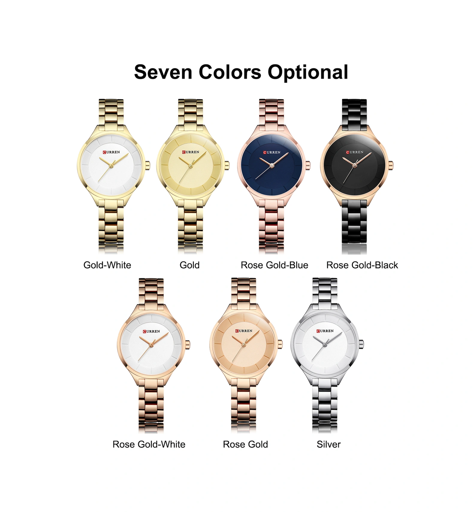 Xindoker Curren Kadın Kol Saati 9015 - Klasik Kuarc Hareketli, Çelik Kayışlı, Günlük Su Geçirmez, Zirve Desenli Moda Saat Çok Renkli