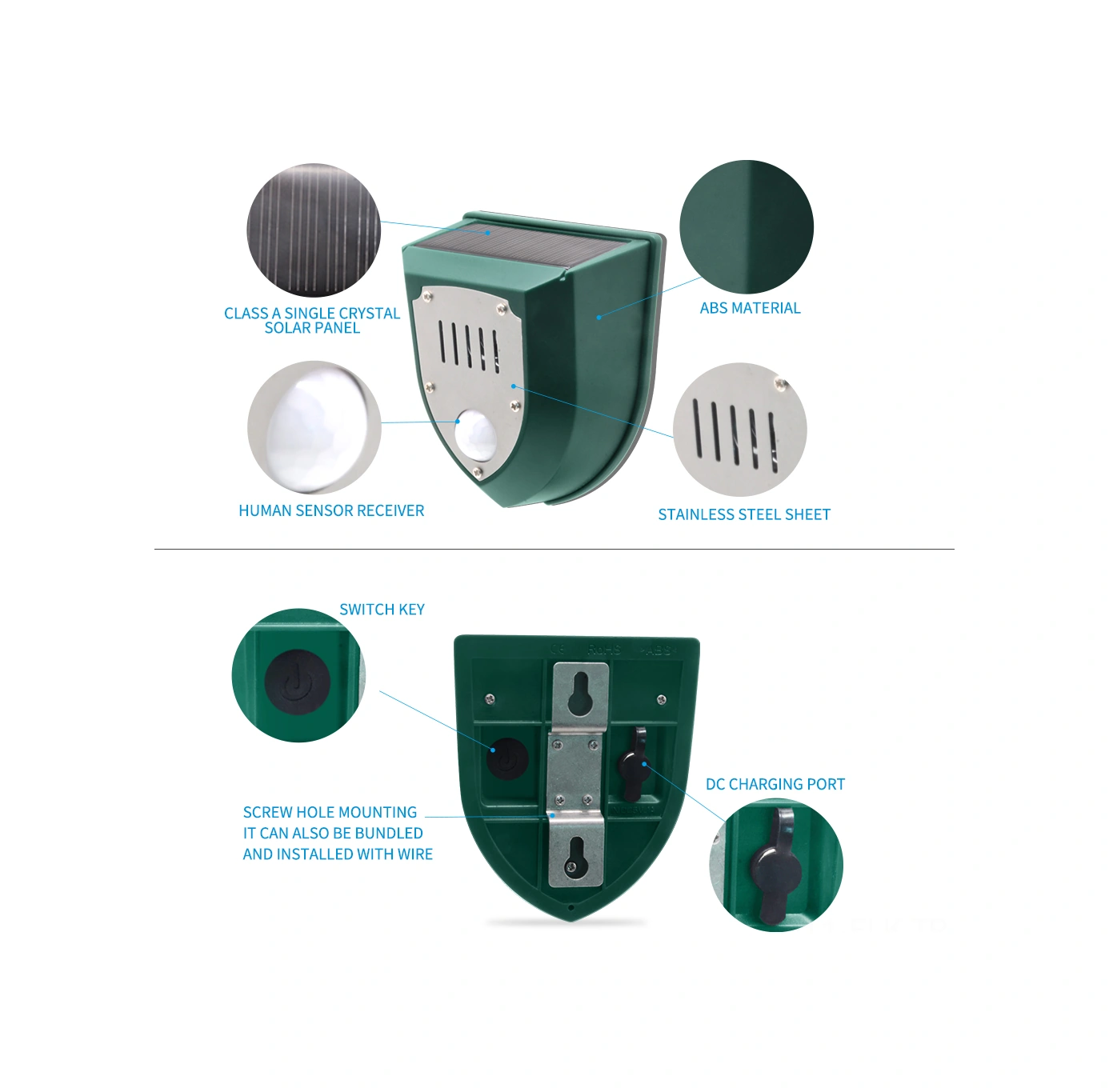 Xindoker Güneş Enerjili Ultrasonik Alarm, 129db Işık-ses Uyarısı, Ip55 Su Geçirmez, 5-8m Kişi Algılama, N911m Yeşil, 1 Adet