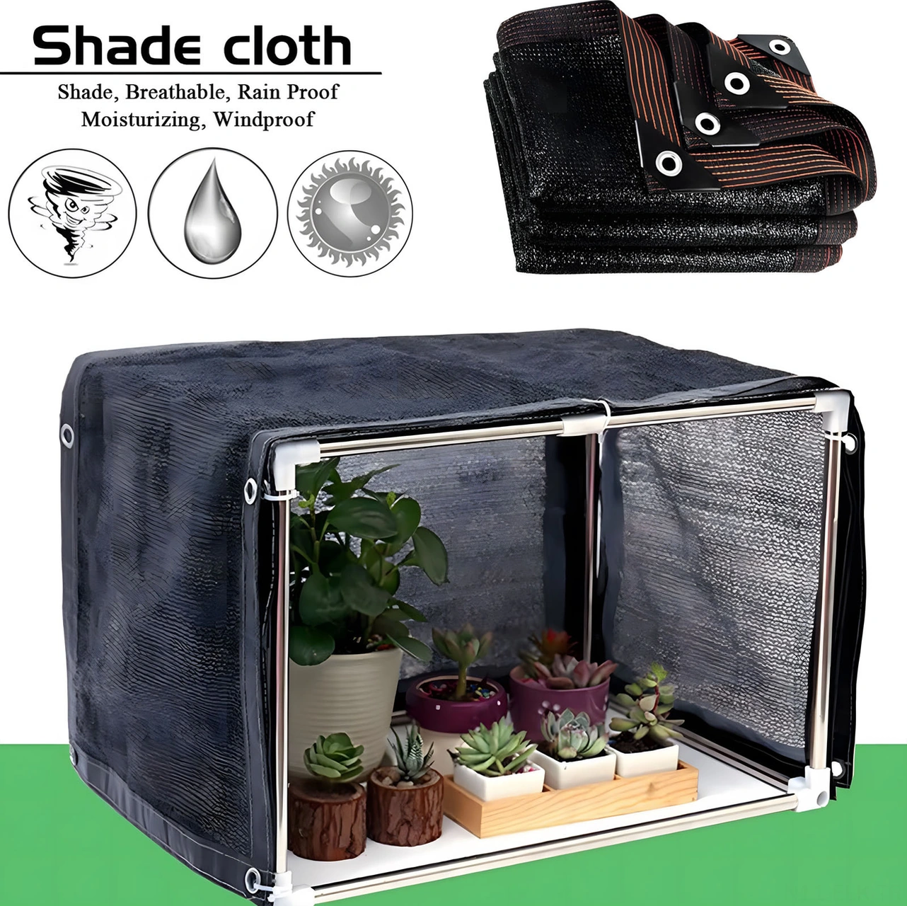 Xindoker Siyah Yüksek Yoğunluklu Polietilen Gölge Tüyü: 90% Gölge Oranı, Yağmurlu, Nemli, Güneş Koruyucu, Soğutucu - 2m X 5m