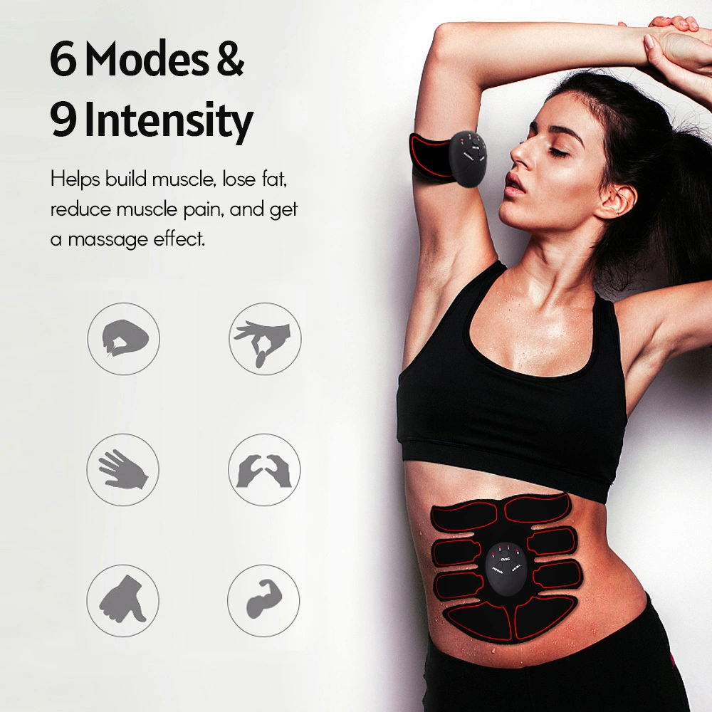 Xindoker Usb Şarjlı Kas Kasagi - 6 Mod 9 Seviye - Karın + Kol Bant Seti - İç Batarya - Ev Ofis Egzersizi Çok Renkli