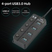 Xindoker Usb3.0 4 Portlu Hub, 5gbps Hızlı Veri Transferi, Bağımsız Güç Anahtarı, Dizüstü/masaüstü Bilgisayar İçin Klavye Fare Usb Çevirici