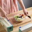 Xiyyadms 4'lü Tekrarlı Kullanım Plastik Folyo Kesici Kutusu - Çift Yönlü Otomatik Yapışkan - 13 İnç Folyo Rolle Uyumlu - Mutfak Gıda Paketleme Aracı Mavi
