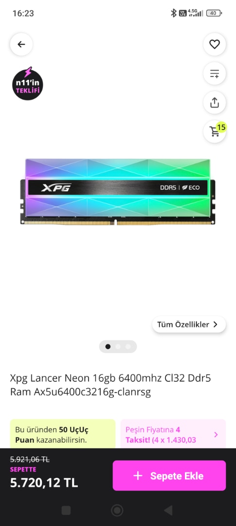 Xpg Lancer Neon 16gb 6400mhz Cl32 Ddr5 Ram Ax5u6400c3216g-clanrsg