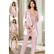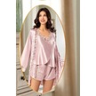 Xses 2165 Kadın Saten Empirme Sabahlıklı 4'lü Pijama Takım-pudra Pudra