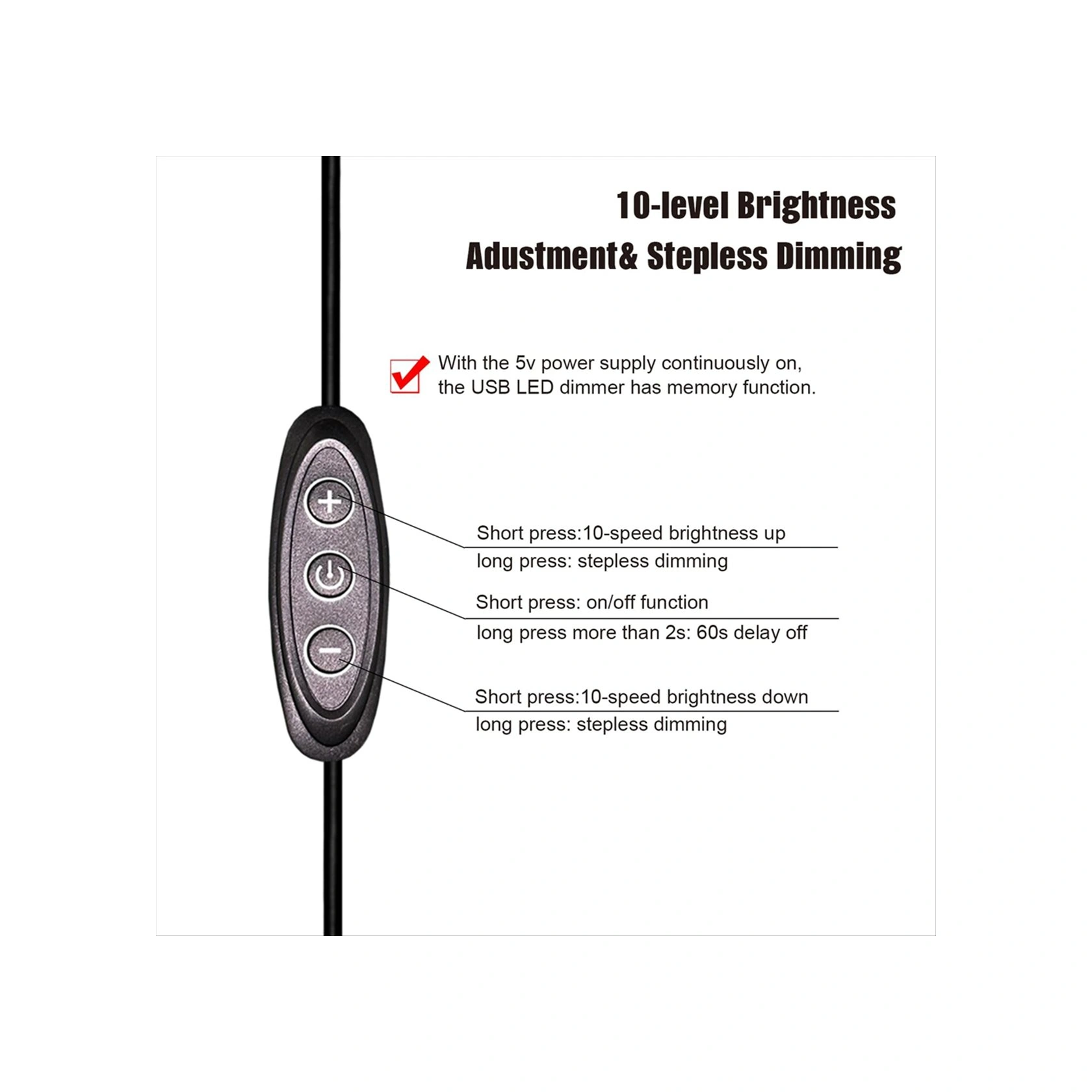 Xurunkeji 5v Usb Led Kısma Anahtarı, 10 Hızlı Kısma, Dişi - Erkek, 5v Tek Renkli Led Işıklar İçin 2'li Paket Usb Güç Kaynaklı Kısma Anahtarı Siyah