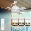 Xuweiwei 46cm 6 Bıçaklı Akıllı Tavan Vantilatörü Beşli Beyaz Paket Vantilatör E26 E27 Soket Led Işık Uzaktan Kumanda Ayarlanabilir Hız 3500k 6000k