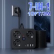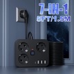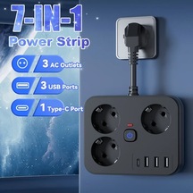 Xuweiwei 7si 1 Arada Priz 3 Ac 3 Usb 1 Type C Siyah Kısa Kablo 152 Cm Ev Ofis Seyahat