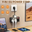 Xuweiwei 8 İnç Siyah Gece Lambası 3 Renk Ayarlanabilir Parlaklık 3 Ac Soket 3 Usb 2 Tip-c Duvar Şarj İstasyonu Ev Ofis Seyahat İçin
