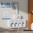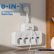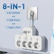 Xuweiwei 8li Güç Şeridi Siyah 4 Ac Çıkış 3 Usb Bağlantı 1 Tip-c Kompakt Duvara Monte Edilebilir Ofis Ev Seyahat İçin Avrupa Standart Fiş