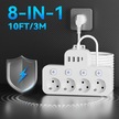 Xuweiwei Beyaz 10ft 8i 1 Arada Standart Eu Priz 4 Usb Portu Usb C Portlu Bagimsiz Anahtarlı 3m Uzatma Kablosu