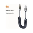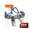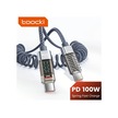 Xuweiwei Grey Usb-a To Type-c 1.8m 5.9ft Toocki Spring Kablosu 100w 6a Dijital Ekranlı Şarj Ve Veri Aktarım Kablosu