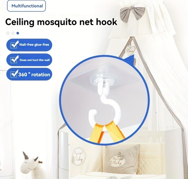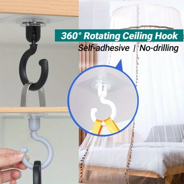 Xuweiwei Siyah 360 Derece Dönen Tavan Kancası Çizilmeyecek Deliksiz Kendinden Yapışkanlı Sivrisinek Filesi Askısı Siyah
