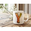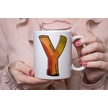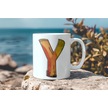 Y Harf Yaprak Renkleri İle Kupa Bardak - Kişiye Özel Alfabe Harfli Bardak - Hediye Beyaz