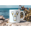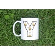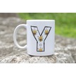 Y Harfi Arı Desenli Kupa - Sevimli Hayvan Temalı Kişiye Özel Kahve Kupası - Şans Kupası Beyaz