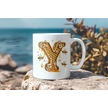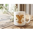 Y Harfi Bal Arısı Tasarım Kupa Bardak - Bal Ve Petek Desenli Kişiye Özel Kahve Kupası - Hediyelik Beyaz