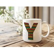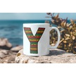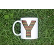 Y Harfi Etnik Desenli Kupa - Afrika Tarzı Kahve Çay Kupası - Hediyelik - Black History Beyaz