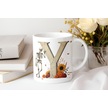 Y Harfi Pembe Kareli Kalpli Göz Emojili Kupa Bardak Eğlenceli Kareli Tasarım Kahve Çay Kupası Beyaz
