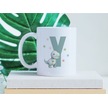 Y Harfi Sevimli Dinozor Kupa Bardak - Açık Yeşil Yıldız Detaylı Dino Tasarım - Hediye Beyaz