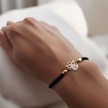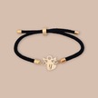 Y Harfine Özel 14 Ayar Altın Plakalı Mevlana Motifli Örgü İpli Hediye Bileklik-319harf-siyah Altın