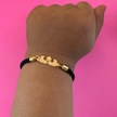 Y Harfine Özel Taç Figürlü 14 Ayar Altın Plakalı Siyah İpek Örgülü Hediye Bileklik-507harf Y