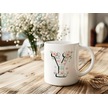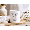 Y Harfli Çiçek Desenli Kupa Bardak - Ekose Desenli Yeşil Pembe Desenli Tasarım - Kişiye Özel Hediye Beyaz